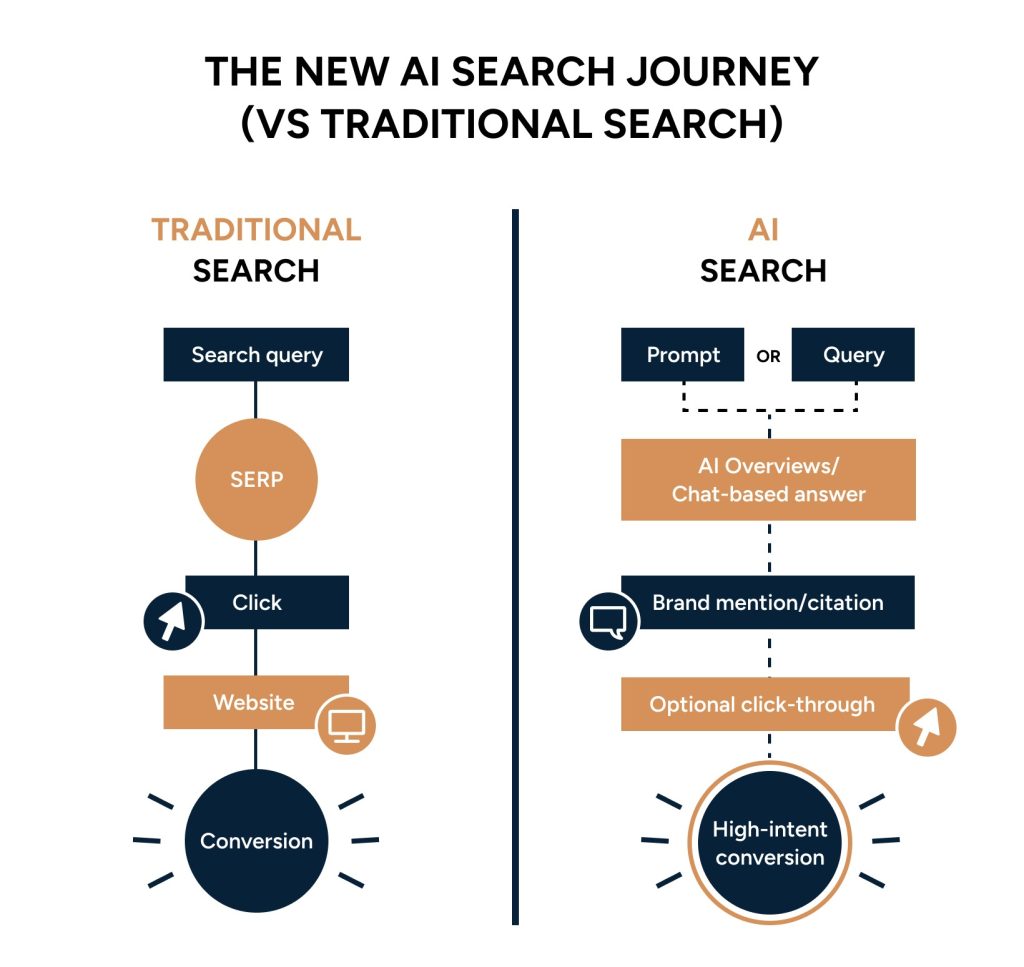 The upside is that the clicks you do earn from AI surfaces tend to be more valuable. Some studies show AI-referred visitors converting several times better than traditional search traffic because those users arrive better informed and further along in their decision-making. The strategic goal, then, is simple: position your content so AI can find it, trust it and feature it as early as possible in the user’s journey.